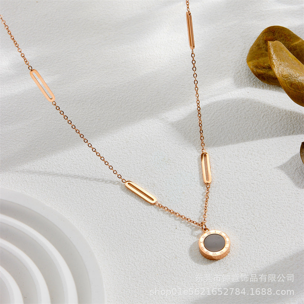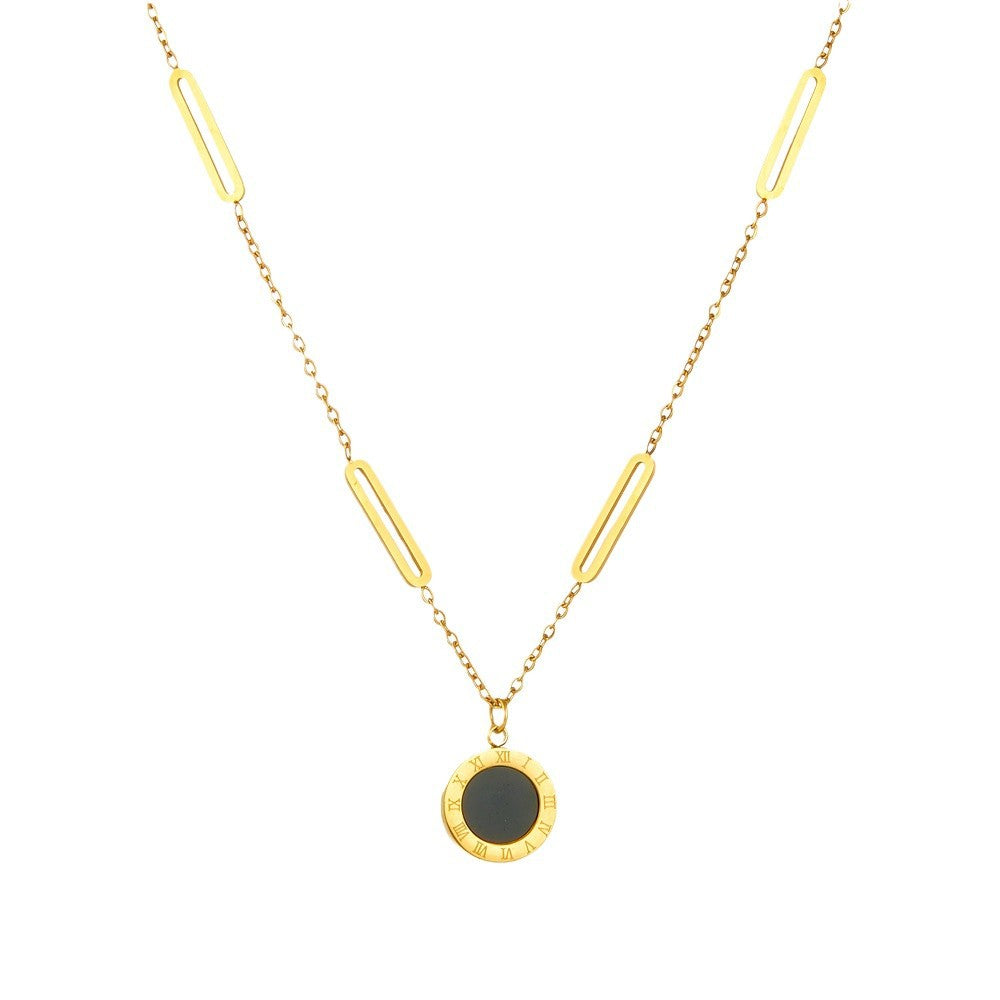 Roman numeral pendant titanium steel necklace 2025081101