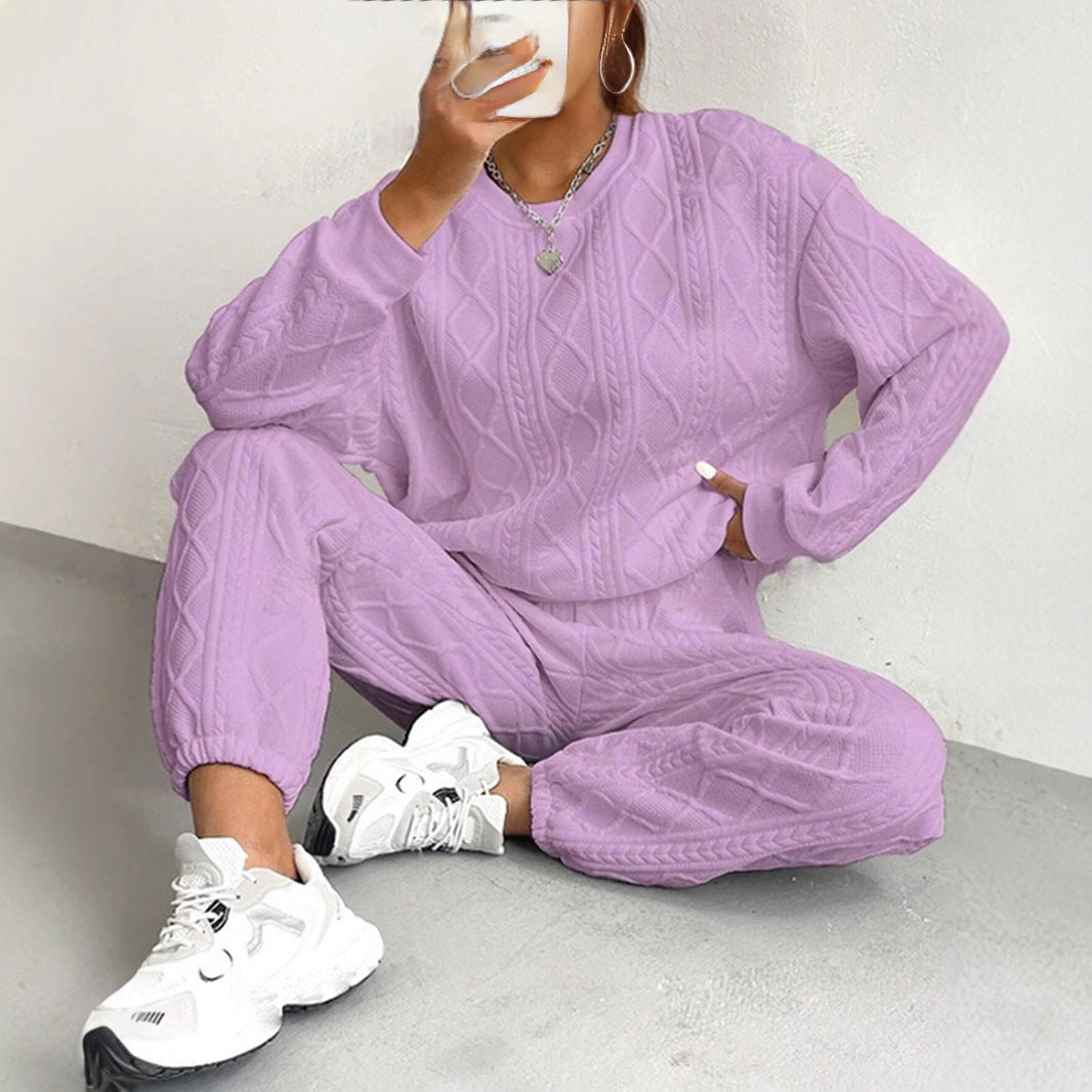 New Fashion Thread Jacquard Trousers Casual Two-Piece Suit For Women