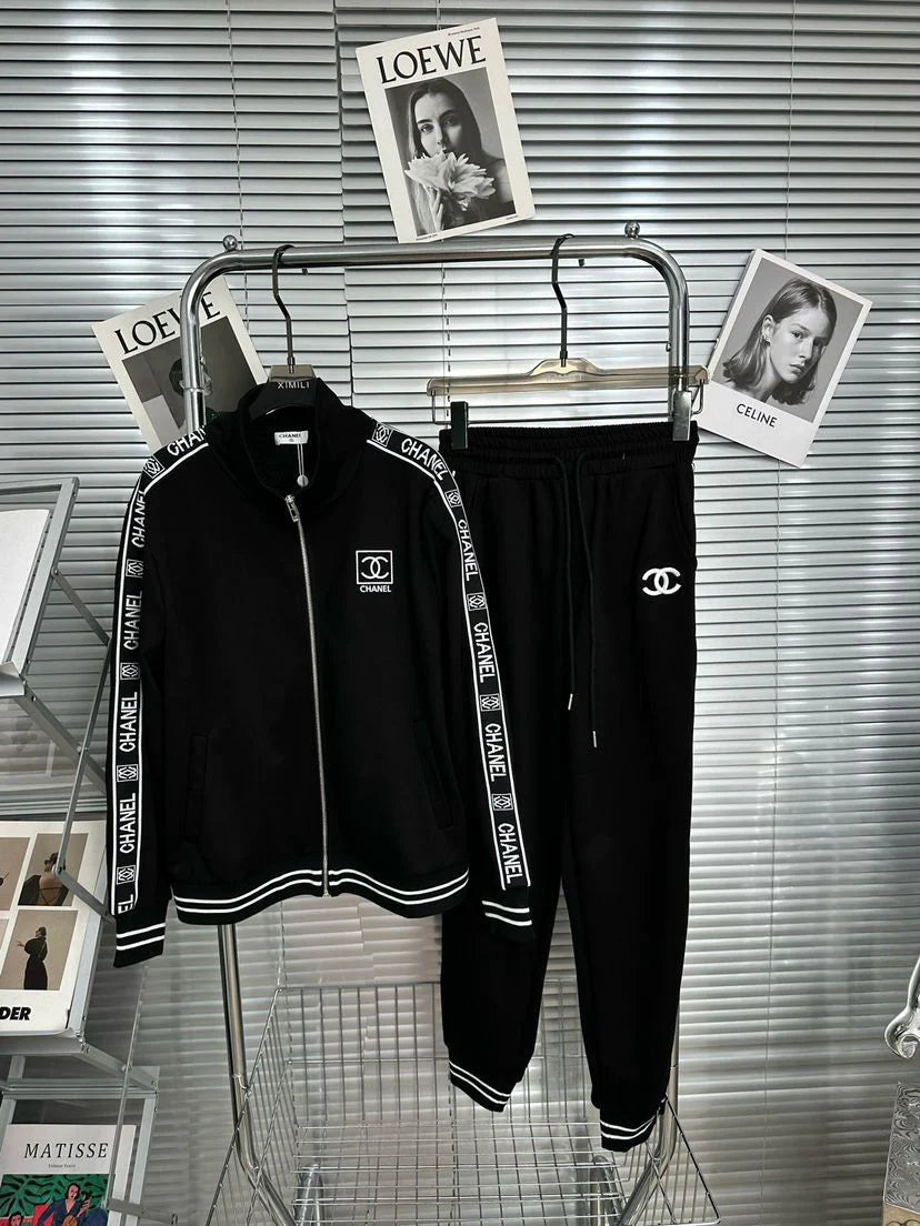 Black Leisure Comfortable Cotton C Logo Women's Sport SuitsPD05202413106