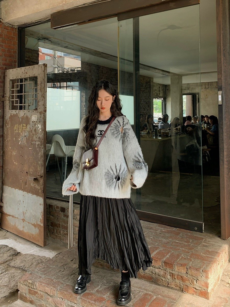 Ripped Gray Sweater Lazy Design Niche Top 0823120403